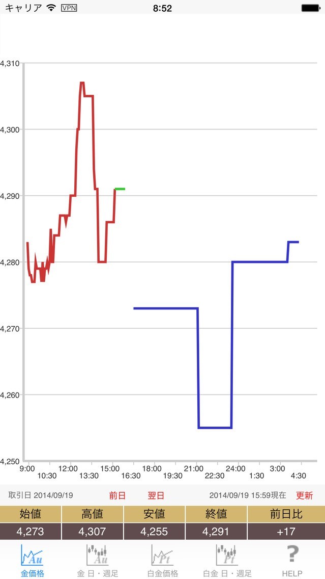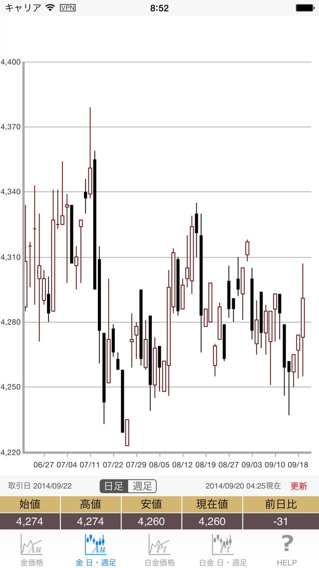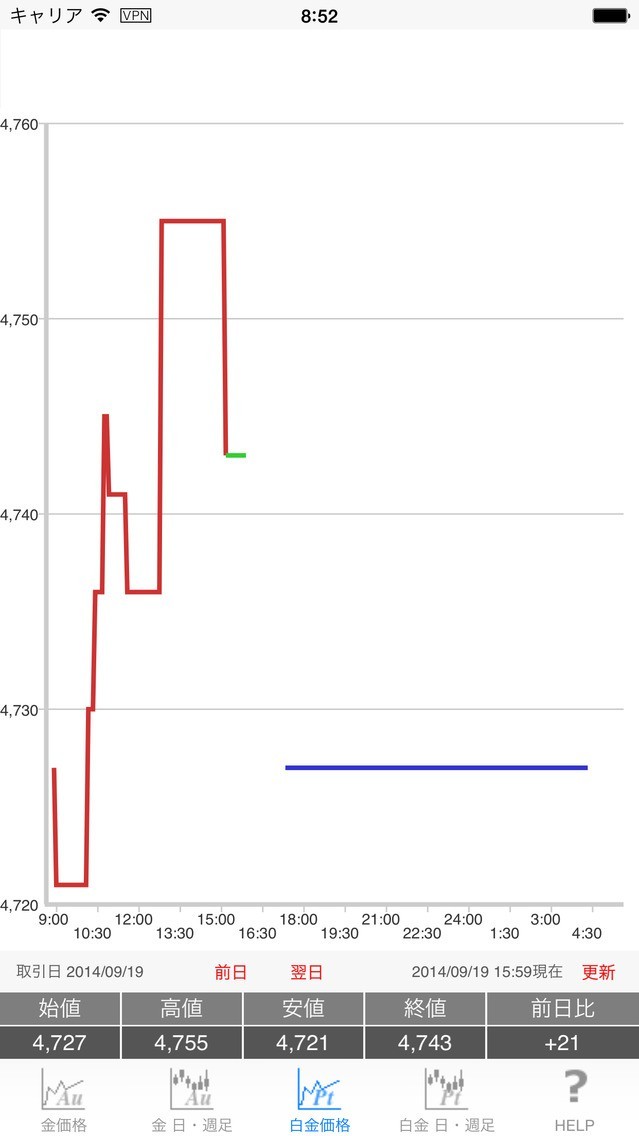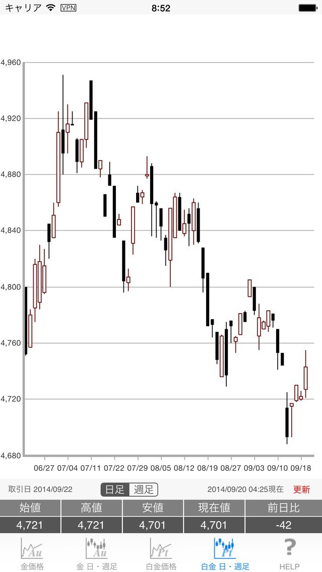 金・白金相場のスクリーンショット