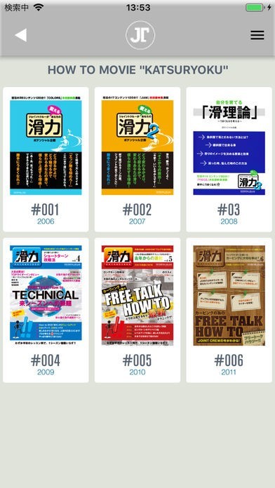 歴代の「JOINT」「滑力」「STREET STYLE」はもちろん、ポテンシャルの過去作品が全部見られます。その数なんと65タイトル。
