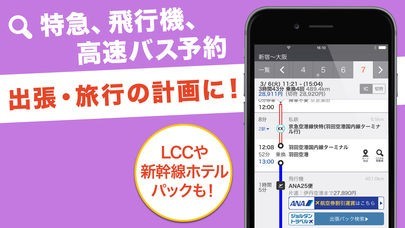 ルートを検索すれば、出張や旅行に便利な特急や新幹線、飛行機の予約もそのまま可能です。また、タクシーを利用したときの運賃も表示しているので、終電を逃したときに料金を調べることができます。