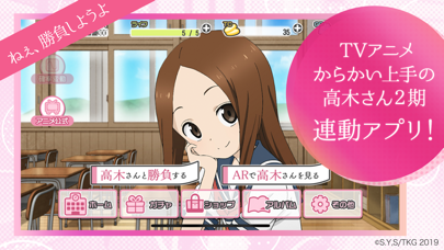 高木さんとの勝負を楽しんだり、AR機能によって現実世界に飛び出した高木さんを見て楽しんだりできるよ