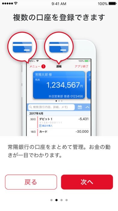 常陽銀行の口座をスマートフォンを使って確認することが出来るようになっているアプリで、銀行口座の残高の照会や入出金の明細などをチェックすることが可能となっています。