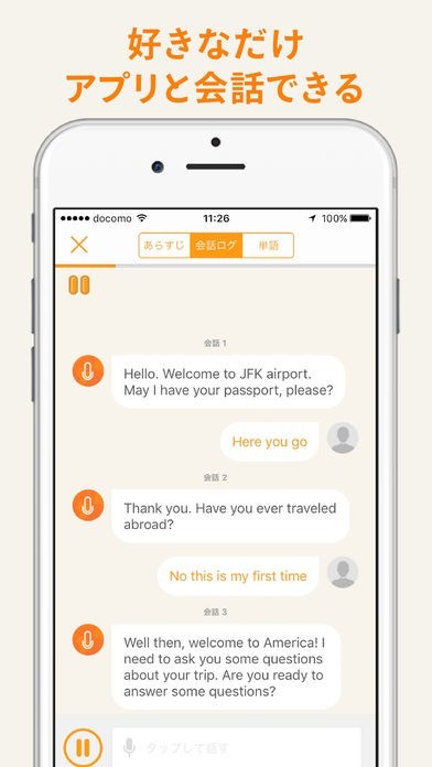 SNS風に入力する会話レッスン機能を搭載。自動応答で会話の練習ができる!