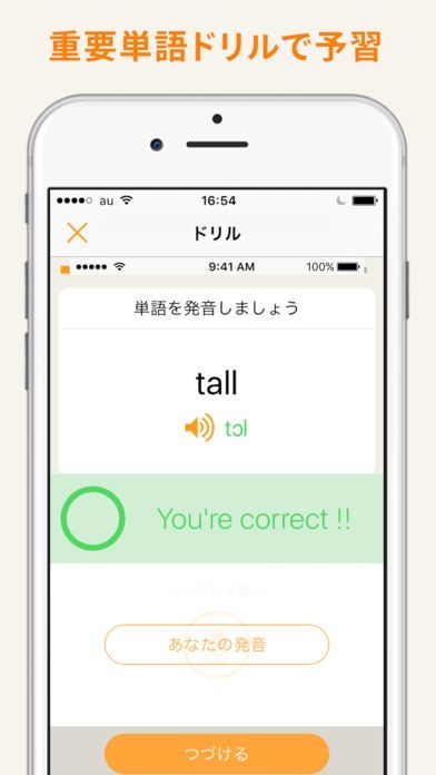 アプリに発声することでどのくらいネイティブの発音に近いかを採点してくれる!