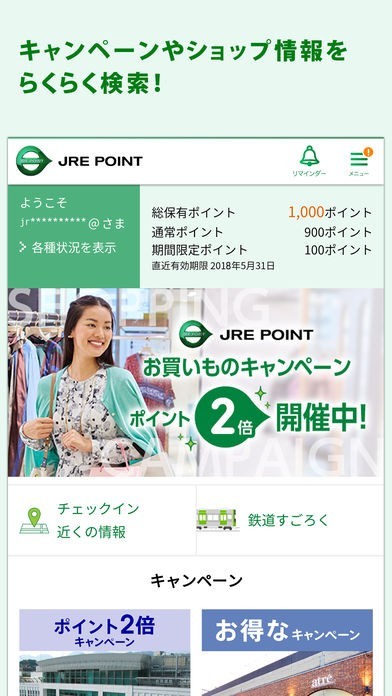 「JRE POINT WEBサイト」会員専用アプリとして、エキナカなどで貯まる「JRE POINT」の閲覧や管理を手軽に行うことができます。また、ここだけのお得なキャンペーン情報なども配信しています。