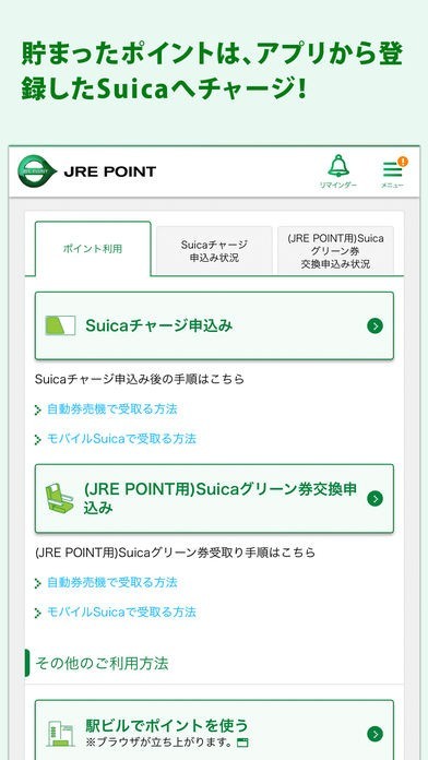おトクな情報を素早くチェックできたり、貯まったポイントを登録したSuicaへチャージできたりするので使っています。