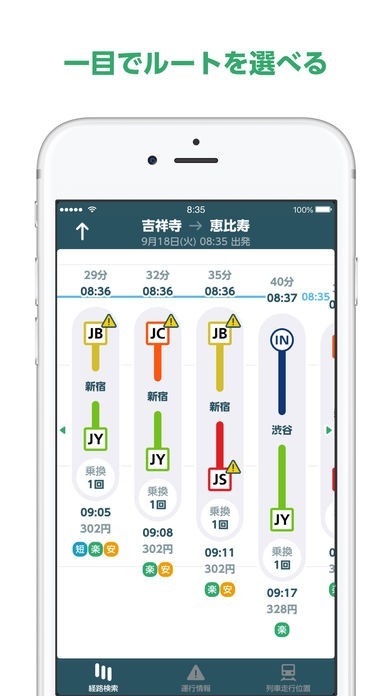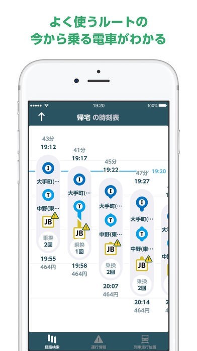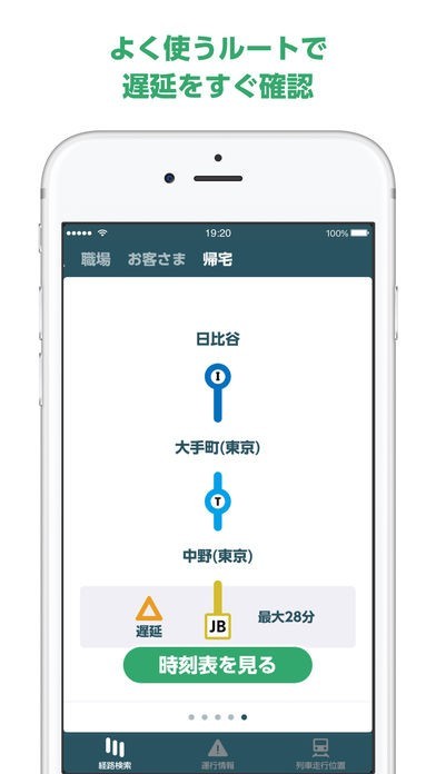 アプリでは、出発・到着時刻はもちろんの事ながら、路線で発生した遅延情報も瞬時に分かるようになっています。電車がなかなか来ない時などには、原因の特定にも役立ちます。