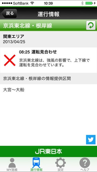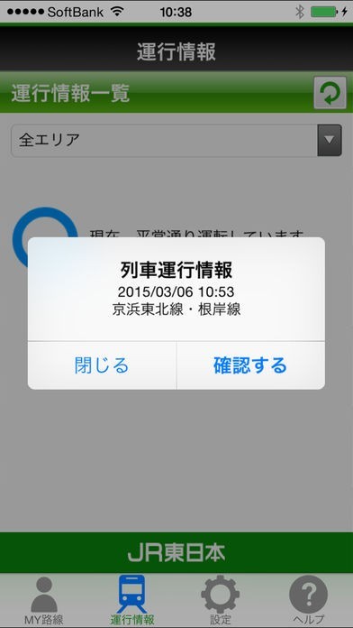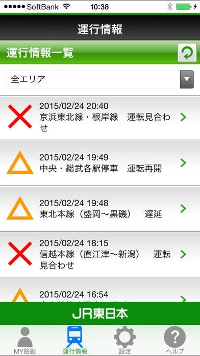 JR東日本 列車運行情報 プッシュ通知アプリのスクリーンショット