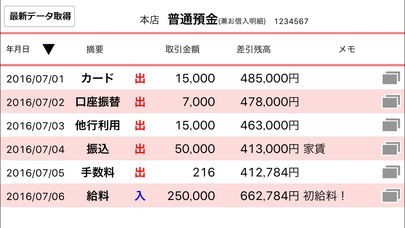 自分が登録している口座において入金、出金がどのくらいあったのか手軽に確認できます。自由にメモを書きこむこともできるので、何に使う予定のお金なのか簡単に記録できます。