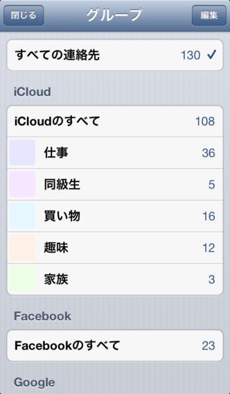 ※グループの塗色指定はUD電話帳独自の機能で標準の連絡先アプリには反映されません。