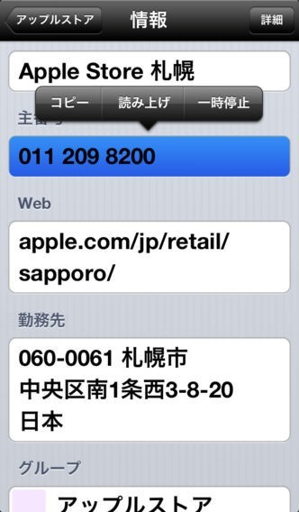 ※情報の詳細表示(編集ボタンの見える状態)での電話番号タッチは標準動作です、間違い電話防止の確認は出ませんのでご注意ください。