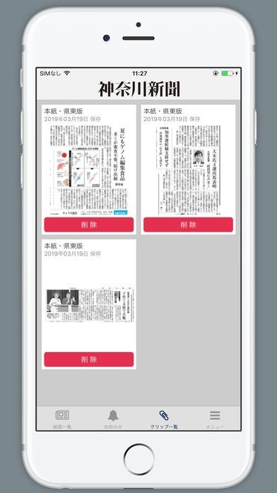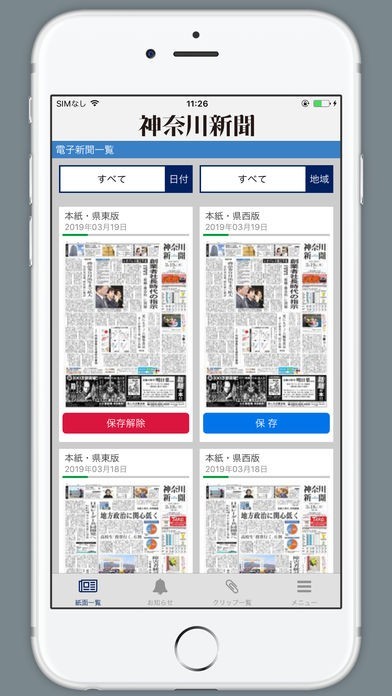 神奈川新聞の電子版が読め、記事の保存機能や記事のサムネイル表示も便利です。