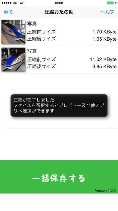 App Storeより引用「圧縮おたの助」はiPhone,iPad等の写真または動画の容量を小さく圧縮し、圧縮したデータを他アプリと共有出来るアプリです。操作は簡単、圧縮したいファイルを選択し、圧縮サイズを選ぶだけ!圧縮後のファイルは端末への保存はもちろん、端末内にある他のアプリへデータを渡すことが可能です。もちろんTwitter、LINE等のSNS系アプリとも連携しています(※連携はOS側の判断になります)