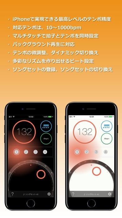 省エネモードや画面ブラックアウト機能を使用していても、バックグラウンド再生機能が搭載されているので、そのままリズム音を再生してくれます!曲中に止まる心配がないので、安心して使用する事が可能です!
