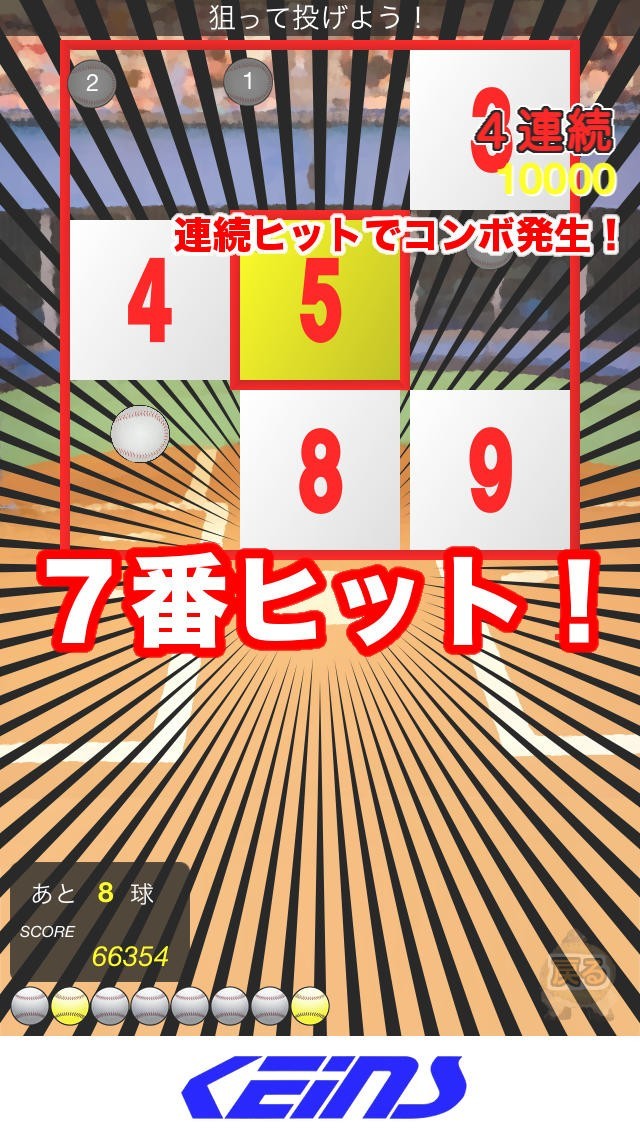 連続ヒットで爽快コンボが発生!野球ボールを投げて9枚のボールを打ち抜こう!