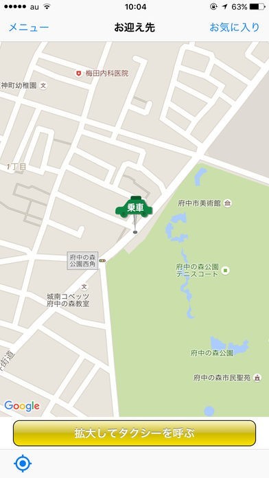 京王自動車 タクシー配車 多摩版では、タクシーの迎車場所を注文履歴から指定する機能があります。また、お気に入り登録する機能もあり、会社や病院などを登録すると便利にタクシーを呼び出せます。
