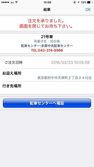 出発地点、および目的地を自由に登録することができるので、勤務している会社や、よく利用する居酒屋を記録したい時に役立ちます。また、京王の配車センターに直接電話をすることができます。