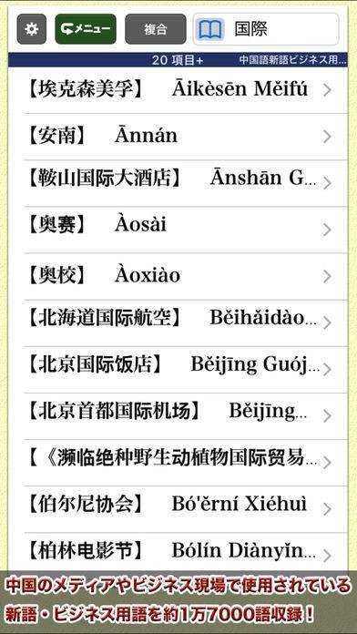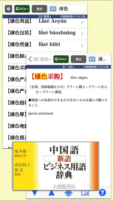 App Storeより引用ビジネスに 学習に 今すぐ知りたい最新用語満載! 大修館書店刊「中国語新語ビジネス用語辞典」がさらに収録語句を充実させてiPhone、iPadに登場。