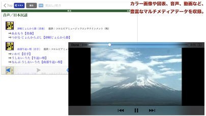 日本語の意味をテキストで解説しているだけでなく、関連した写真や動画も収録されているため、より深く理解することができます。動植物や人物、世界遺産などが見られます。
