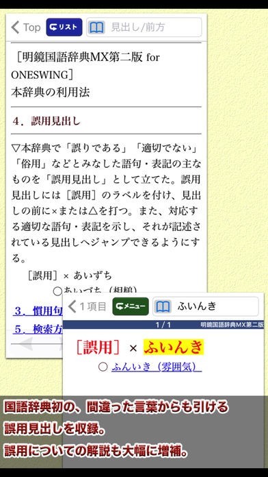 明鏡国語辞典MX第二版【大修館書店】(ONESWING)のスクリーンショット