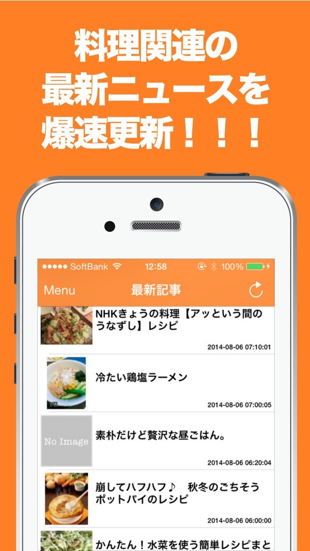 1タップの超簡単操作で最新の料理ニュースがサクサク閲覧可能!