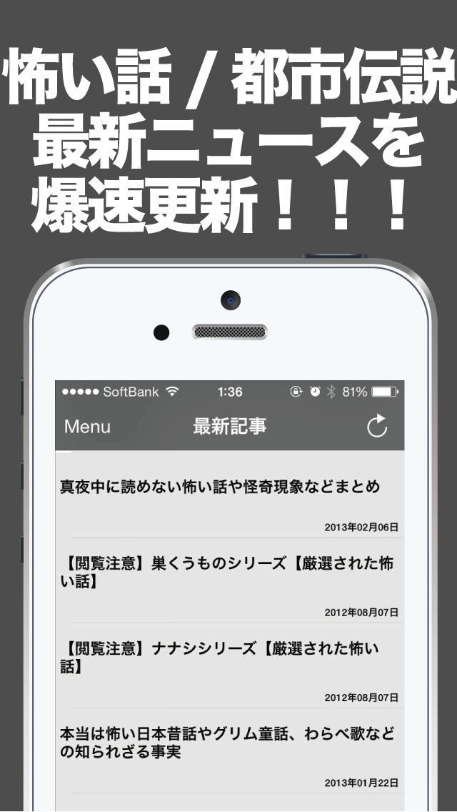 このアプリさえあれば1タップで簡単に怖い話が読めます。