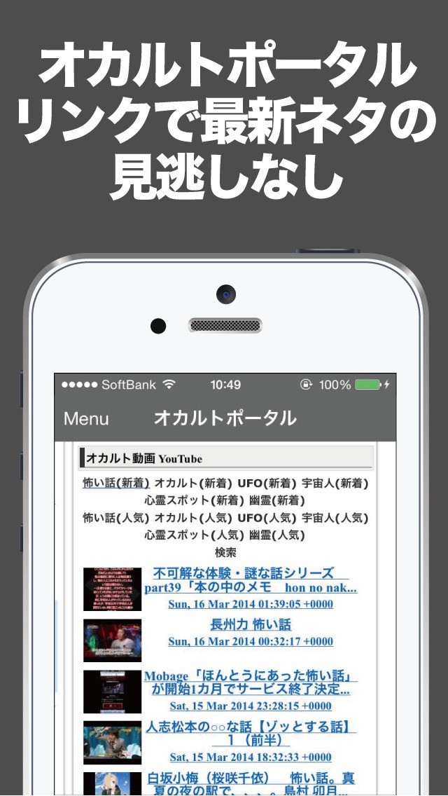1タップの超簡単操作で最新の怖い話がサクサク閲覧可能。