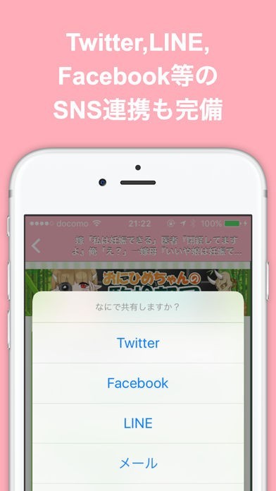 Twitter, Facebook, LINE等のソーシャル連携も万全!どんどんシェアしよう!
