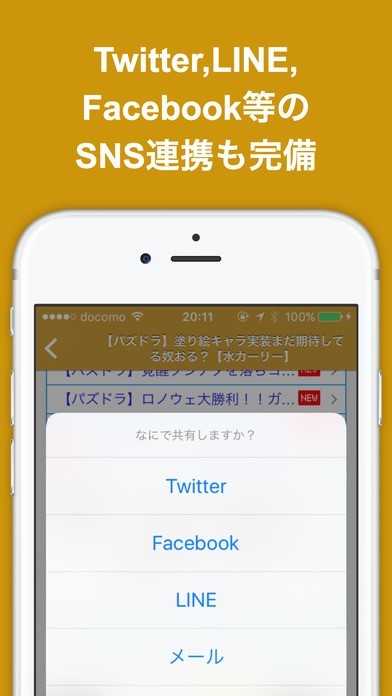 Twitter, Facebook, LINE等のソーシャル連携も万全!どんどんシェアしよう!