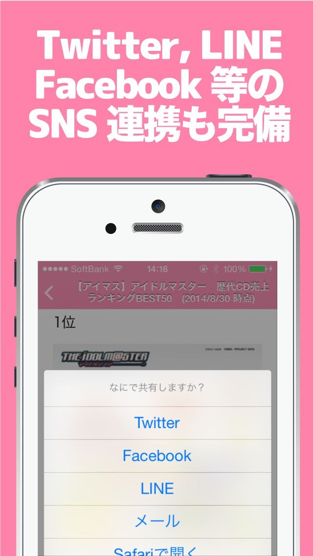 Twitter, Facebook, LINE等のソーシャル連携も万全!どんどんシェアしよう!