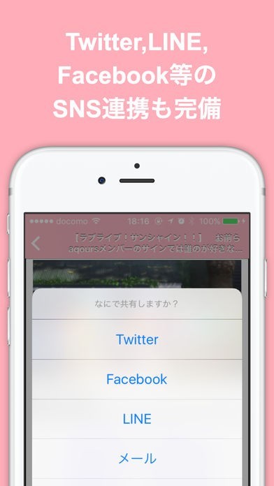 Twitter, Facebook, LINE等のソーシャル連携も万全!どんどんシェアしよう!