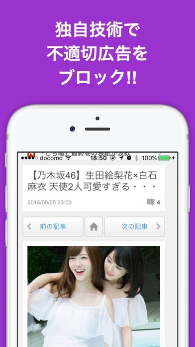 「ブログまとめニュース for 乃木坂46」には乃木坂46の最新情報をスマホに表示させる機能が付いています。 あちこちのニュースサイトで情報探しを行うのでは面倒、最新情報を手っ取り早く入手したいという乃木坂46ファンの方に便利な機能です。 日間や週間、月間ランキングにて良く読まれている最新情報もすぐに分かります。 サイトによっては不適切な広告が表示されることがありますが、広告ブロック機能が付いているためにムダな通信料を消費したくない方にも役立ちます。 お気に入り機能を利用すると何度も読みたい情報はすぐに表示させられるようになります。 SNSサイトとの連携機能も付いており、乃木坂46ファンのお友だちに知らせたい時にも便利です。