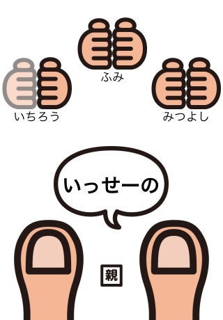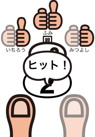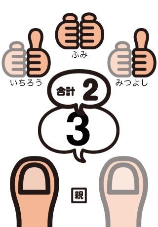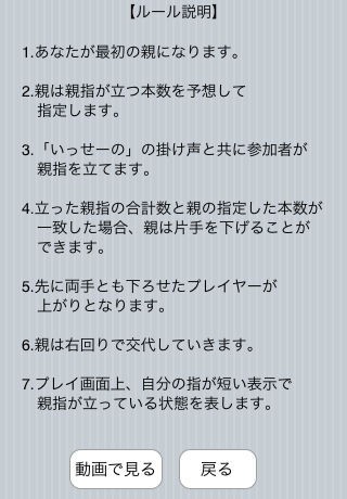 App Storeより引用「いっせーの」で親指を立てて当たった人から抜けていくゲームです。