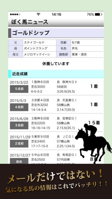 出馬表やオッズを確認する事が可能なので、レースの予測を立てたい時に役立ちました。