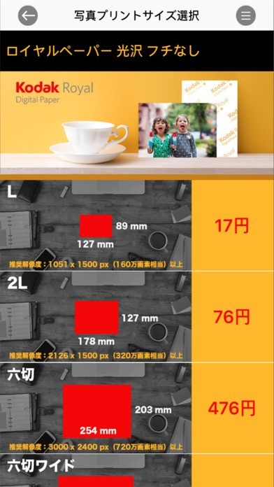 「PRINT@KODAK」はスマートフォンで24時間いつでもコダックの写真プリントサービスへの注文をすることが出来るアプリになります。豊富なデザインテンプレートが用意されているので自由にデザインを選択したり、メッセージを入力することが可能になっているので年賀状や喪中はがきなどを作成するのにも便利なアプリとなっています。高品質なコダックペーパーにプリントをすることが出来るようになっているだけでなく、写真のサイズもL版や2L版、A4、はがきサイズなどさまざまなバリエーションが用意されているので、用途に合わせてサイズを選択することが出来ます。