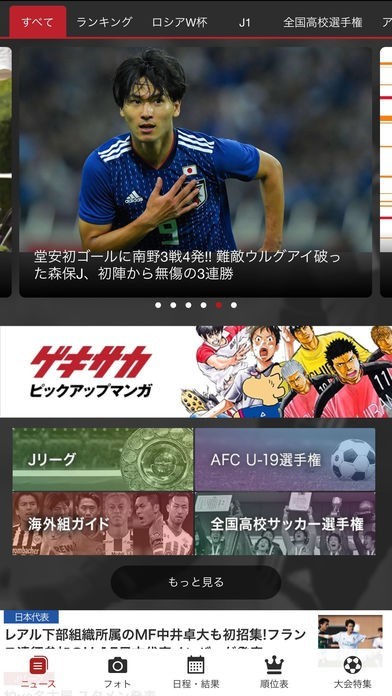 日本代表の試合速報や試合結果を、とにかく早くさらに詳しく知りたいと思っている人にはピッタリのアプリです。 Jリーグや海外リーグ、高校大学の試合まで幅広く情報が集められているので、多種多様なサッカーファンが情報源にできるアプリです。 上部のタブを設定変更することで、膨大な情報が集められている中から自分が注目しているジャンルを簡単に閲覧できるようになります。 また、選手採点や選手ランキングなどのユーザー参加型のコンテンツも充実していて楽しめます。 運営が講談社なので漫画やコラムも充実していて、タイムリーな話題もフォローされています。 漫画はストーリーが楽しめる週刊連載漫画と、週三回更新の四コマ漫画などがあります。