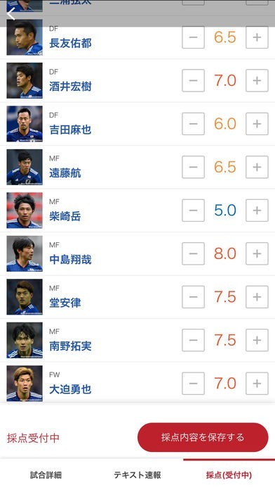 選手の採点が可能!全国のユーザーと一緒に試合結果を分析しよう