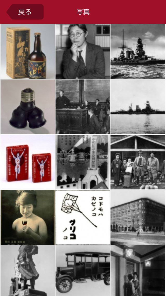 年代から、50音順から、ジャンルから、写真から、キーワードから検索できる。