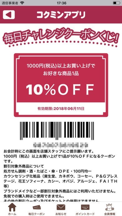 コクミンのポイントカードを画面に表示でき、レジをサッと済ませられて便利です。
