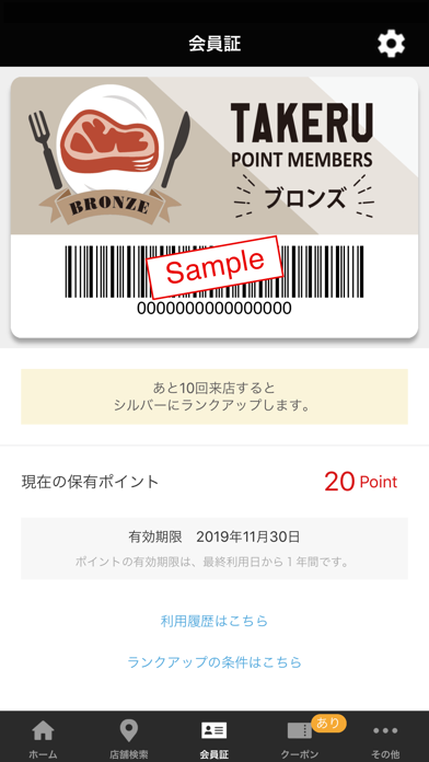 アプリには、それぞれ会員証が設定されています。レジでの支払いの時に会員証を見せることで、ポイントが貯まっていきます。食べれば食べるほどランクアップするので、さらにお得にお食事をすることが出来ますよ。