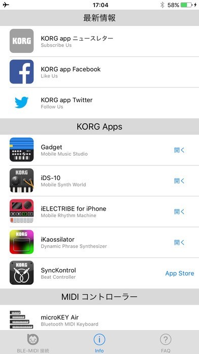 KORG社製の対応BluetoothMIDIコントローラーを自動的に設定することが出来る!
