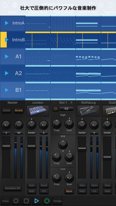 収録されている30種以上のデジタル楽器から好きなものをセレクトして電子音楽を作ることができる「KORG Gadget」。モバイルでの使用に最適な機能が盛り沢山です。DTMの初心者から時間や場所にとらわれずに音楽制作をしたい人まで、幅広い需要に応えます。縦画面でも横画面でも使いやすい練られた操作性がユーザーのパフォーマンスを最大限引き出します。