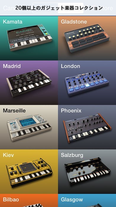 ガジェットと名付けられたシンセサイザーその他のデジタル楽器が多数用意されているので多彩な音作りが可能です。1つ1つのガジェットは尖った特徴を持ちつつ簡単に扱えるように設計されています。