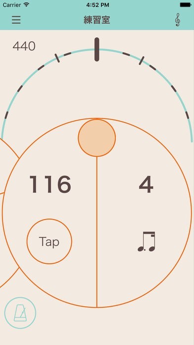 このアプリは、レベル・メーター、メトロノーム、クロマチック・チューナーといった基本的な機能も充実しています。メトロノームはタップテンポにも対応しているなど多機能です。