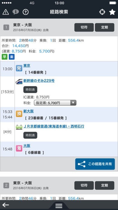 急いでいるときに便利なデジタル JR時刻表 Lite