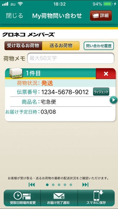 スマホから荷物の配送状況が確認できて便利です。お届け予定通知機能で配達日を教えてくれるのが助かります。