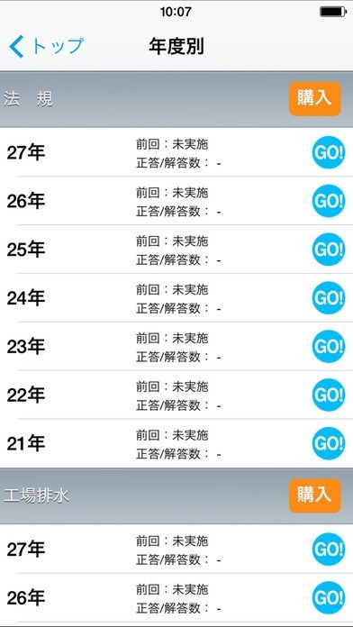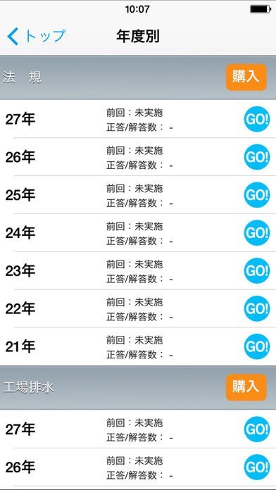1つの試験科目(章)をご購入いただくと、項目別と年度別のどちらの出題形式でも問題を実施することができるようになります。