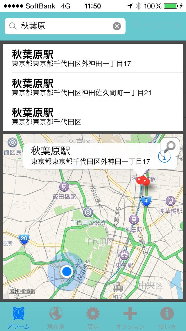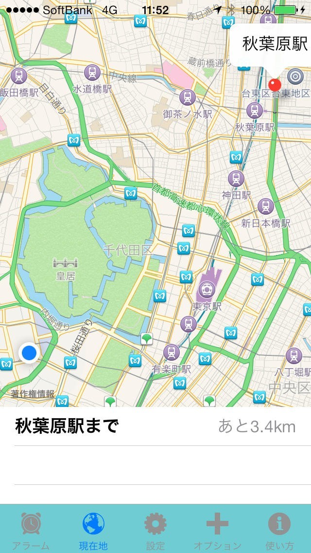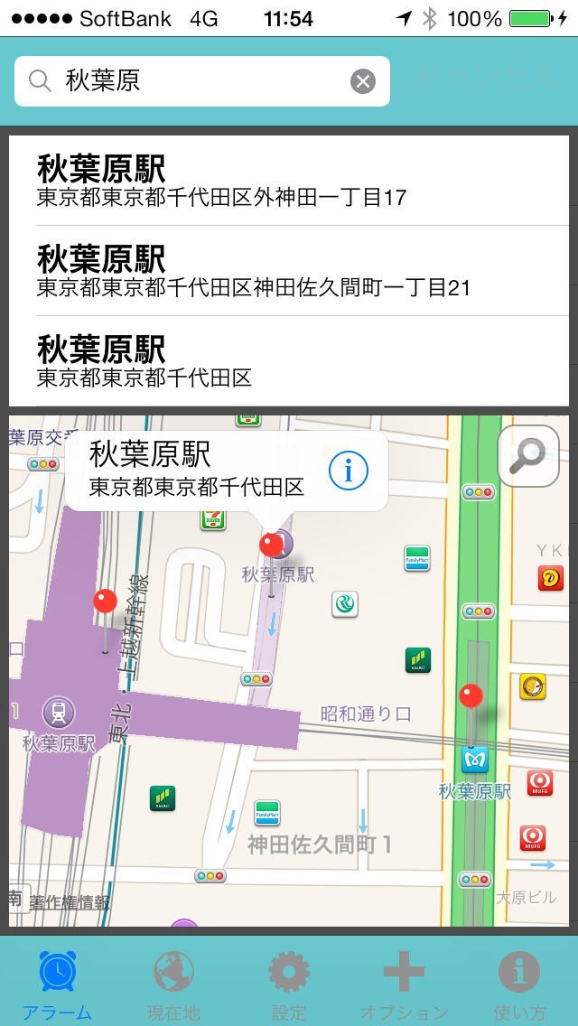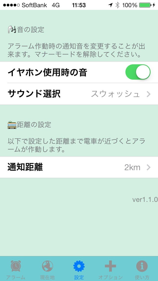 ・駅まであと何kmの所で知らせてくれるか、選ぶことが出来ます。