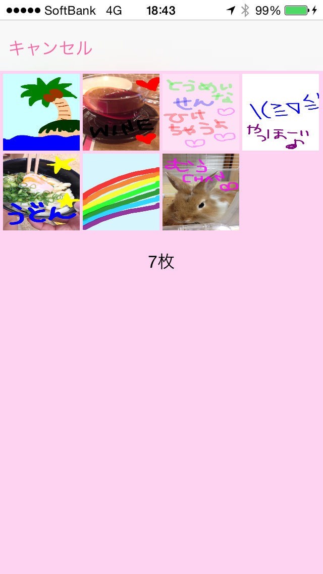 カメラロールから画像呼び出しも可能。写真や画像に文字や落書きを加えよう!