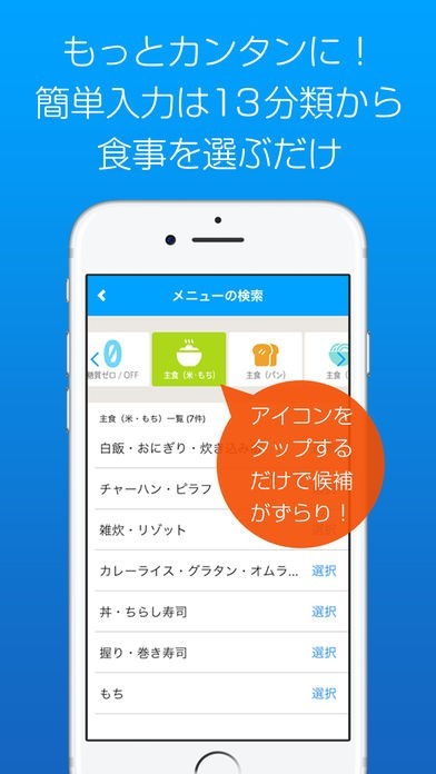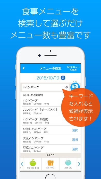 自分がとったメニューを選ぶだけ!糖質を記録しながら管理できる