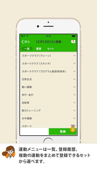 運動管理機能搭載!スポーツクラブでの運動を記録に残せる!